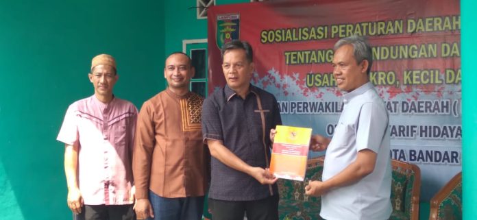 Bandarlampung (KANDIDAT) – Anggota DPRD Provinsi Lampung, Syarif Hidayat menggelar Sosialisasi Peraturan Daerah Nomor 3 Tahun 2016 Tentang Perlindungan dan Pemberdayaan Usaha Mikro Kecil Dan Menegah ( UMKM ), kegiatan tersebut berlangsung di Gedong Pakuon, Kecamatan Telukbetung Selatan Minggu ( 27/8/2023 ).