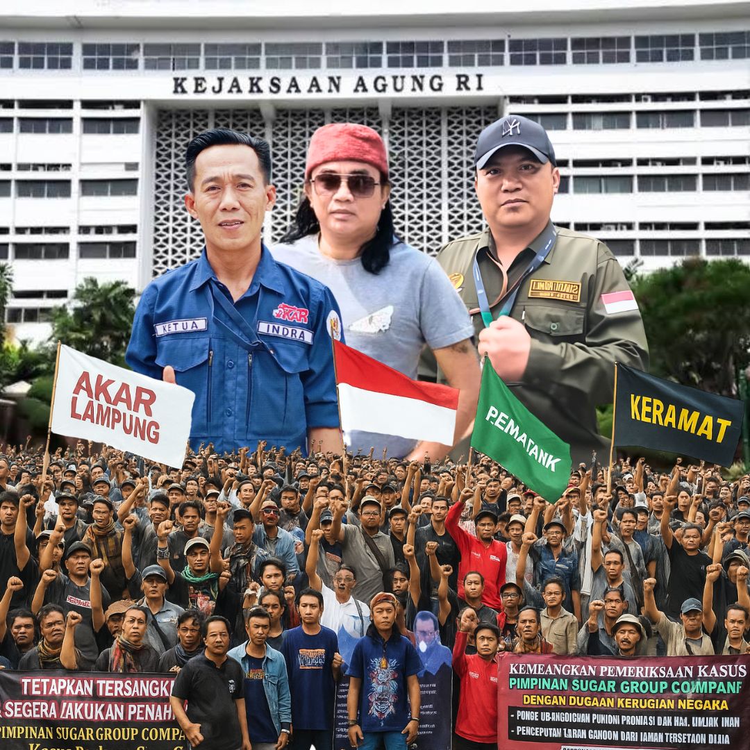 Sementara, Ketua DPP Pematank Suadi Romli mengungkapkan, Desakannya yang paling utama tiga aliansi Lampung ini, meminta kepada aparat penegak hukum dalam hal ini kejagung termasuk Presiden Republik Indonesia.” untuk mendengarkan aspirasi dari Lampung terkait kedudukan perusahaan Sugar Group company di Lampung terutama baik pengelolaan HGU lahan,”urainya