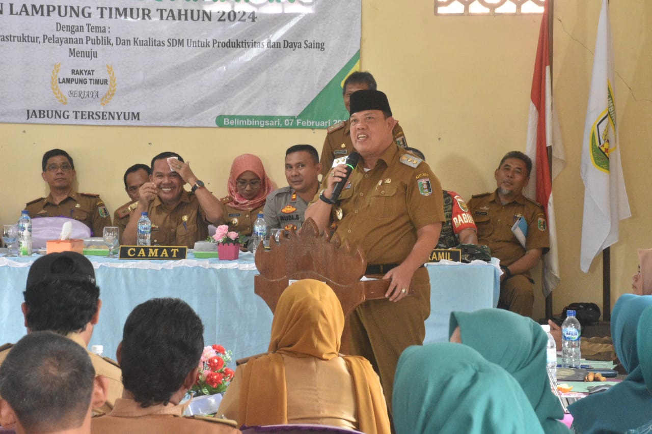 “Saya atas nama Pemerintah Daerah menyampaikan ucapan terimakasih serta apresiasi dan penghargaan setinggi-tingginya kepada seluruh peserta yang hadir dalam forum Musrenbang Kecamatan ini, semoga kita selqlu diberi kemudahan dalam rangka menunaikan amanah untuk membangun daerah Kabupaten Lampung Timur Bumei Tuwah Bepadan tercinta ini,” katanya.