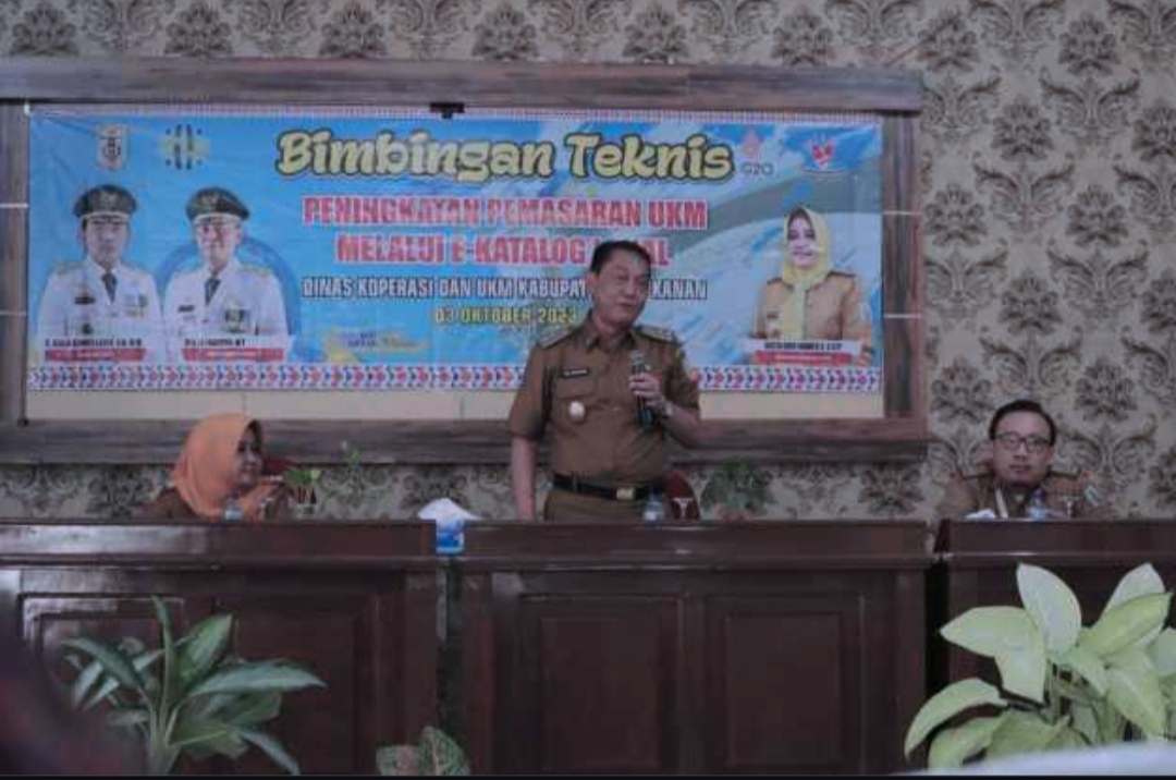 Way Kanan ( KANDIDAT) -Wakil Bupati Way Kanan Drs. H. Ali Rahman, S.T.,M.T menghadiri sekaligus membuka Kegiatan Bimbingan Teknis Peningkatan Pemasaran UMKM Melalui E-Katalog Lokal di Aula TP PKK Way Kanan, Selasa (03/10/2023).