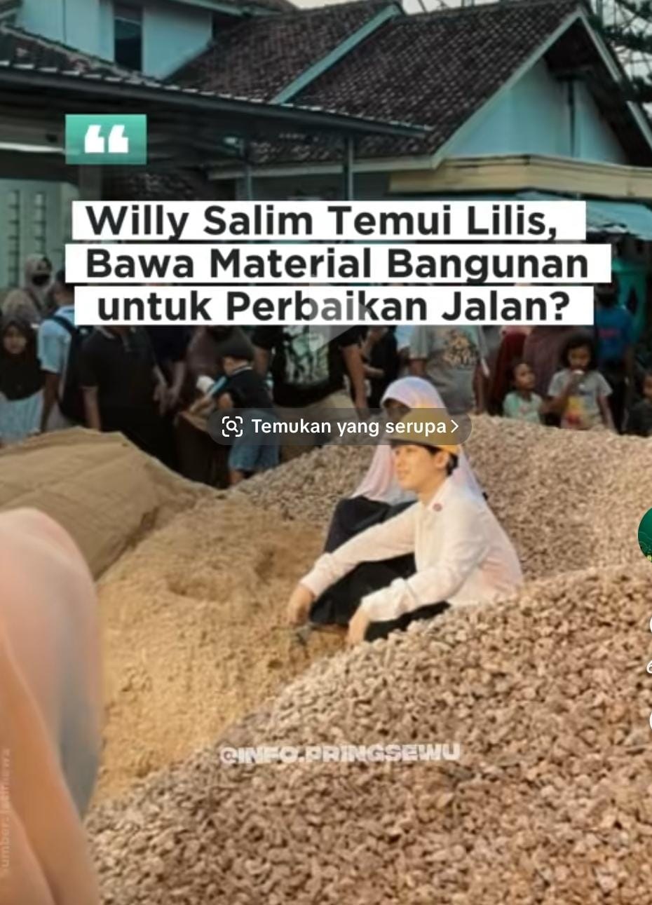Dalam video yang diunggah akun TikTok Info Pringsewu, terlihat jelas Willy membawa sendiri material bangunan untuk menambal jalan rusak yang sudah lama meresahkan warga.